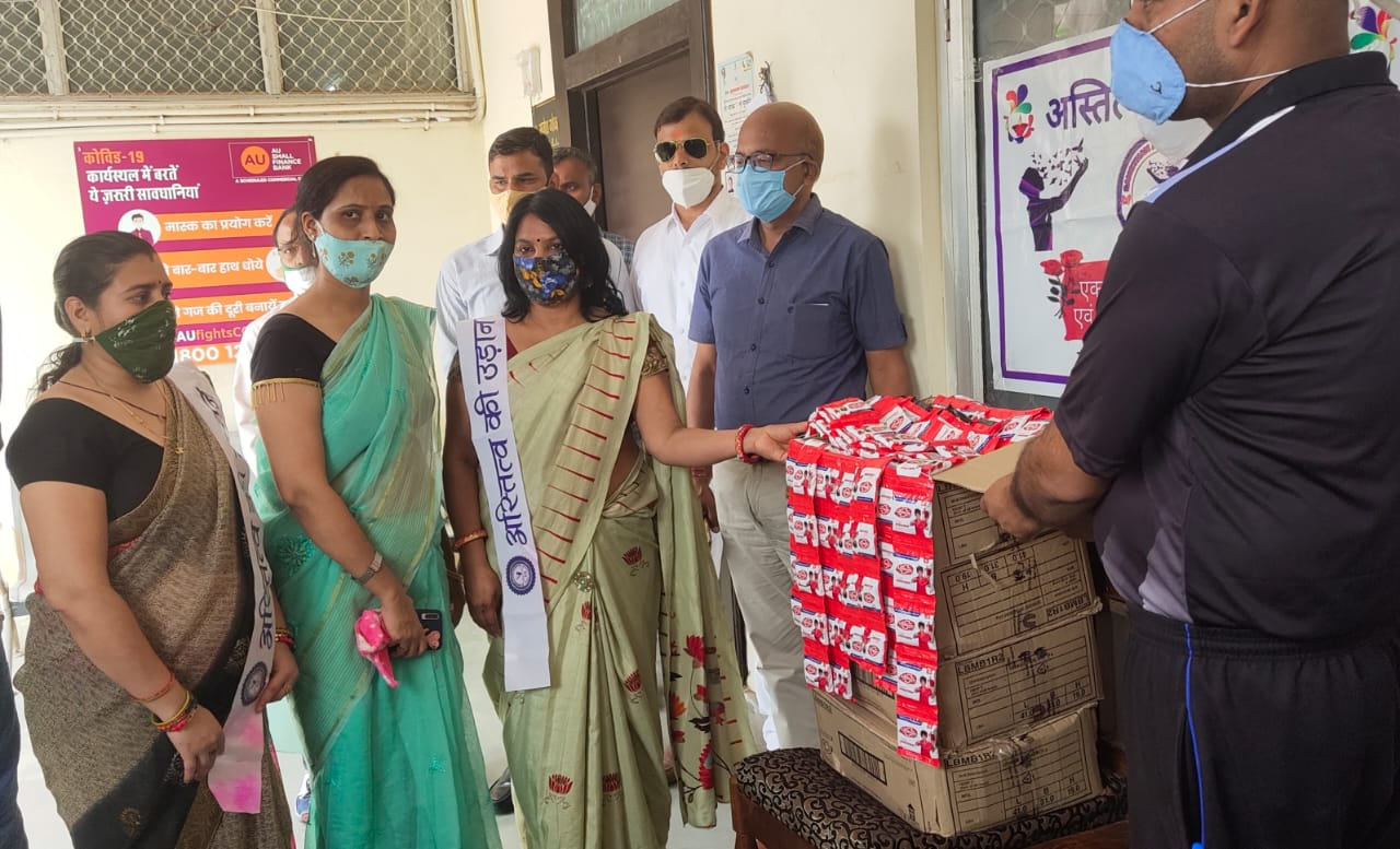 अस्तित्व की उड़ान संगठन ने फ्रंटलाइन वर्करों को साबुन किट वितरित की।