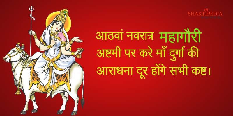 देवी दुर्गा के नौ रूपों में महागौरी आठवीं शक्ति स्वरूपा हैं।दुर्गापूजा के आठवें दिन महागौरी की पूजा अर्चना की जाती है।महागौरी आदिशक्ति हैं, इनके तेज से संपूर्ण विश्व प्रकाशमान होता है, इनकी शक्ति अमोघ फल दायिनी है।माँ महागौरी की आराधना से भक्तों के सभी कष्ट दूर हो जाते हैं तथा देवी का जीवन में पवित्र और अक्षय पुण्यों का अधिकारी बनता है ।दुर्गा सप्तशती में शुम्भ -निशुम्भ से पराजित होकर गंगा के तट पर जिस देवी की प्रार्थना देवता गण कर रहे थे वह महागौरी है ।देवी गौरी के अंश से ही कौशिकी का जन्म हुआ जिससे शुम्भ -निशुम्भ के प्रकोप से देवताओं को मुक्त कराया ।यह देवी गौरी शिव की पत्नी हैं, यही शिवा और शांभवी के नाम से भी पूजित होती हैं।