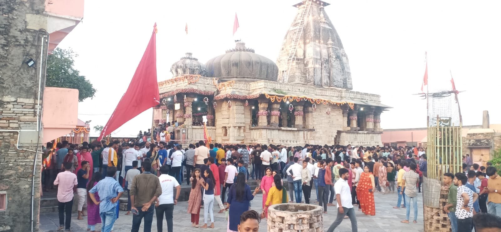 चित्तौड़गढ़। नवरात्र स्थापना के साथ ही शहर एवं जिले के विभिन्न शक्तिपीठों पर घट स्थापना के साथ ही विशेष पूजा अर्चना एवं अनुष्ठान शुरू हो गए है। इस दौरान माता के दर्शन के लिए बड़ी संख्या में जिले एवं आसपास के क्षेत्रों से श्रद्धालुओं के पहुंचने का क्रम शुरू हो गया है। ऐसे में वे भौर से ही माता के दर्शन के लिए पहुंच रहे है। इतना ही नहीं माता के दर्शन के लिए कतार में खड़े होकर घंटों अपनी बारी का भी इंतजार कर रहे है। ऐसे में शहर के दुर्ग स्थित कालिका माता के दर्शन के लिए सोमवार को बड़ी संख्या में श्रद्धालु पहुंचे और मंदिर पर लगी कतार में अपनी बारी का इंतजार भी किया। इस दौरान माता के मंदिर से लेकर करीब दो किलोमीटर तक श्रद्धालुओं की कतारें लगी रही। वहीं माता का भी विशेष शृंगार कर पूजा अर्चना की गई।