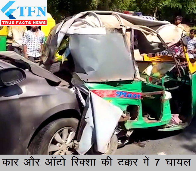 राजसमंद में गोमती उदयपुर फोर लेन पर ऑटो व कार की टक्कर हो गई जिसमे एक ही परिवार के सात लोग घायल हो गए। मौके पर पहुंची पुलिस ने दुर्घटना के बाद सभी घायलों को ऐम्बुलेंस से हॉस्पीटल पहुंचाया। इलाज के दौरान एक महिला की हालत गंभीर होने पर उसे उदयपुर रेफर किया गया।