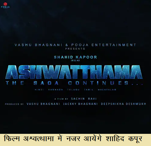 फिल्म अश्वत्थामा की ऑफिशियल अनाउंसमेंट जैकी भगनानी और शाहिद कपूर ने अपने सोशल मीडिया के माध्यम से दी है | पहले इस फिल्म को विक्की कौशल करने वाले थे इसके लिए विक्की ने तैयारी भी शुरू कर दी थी फिर विक्की फिल्म से बाहर हो गये है | इस फिल्म के राइटर और डायरेक्टर सचिन रवि होंगे | यह एक पेन इंडिया फिल्म है जिसे हिंदी के साथ तमिल, तेलुगु, मलयालम और कन्नड़ भाषा में सिनेमाघरों में भी रिलीज किया जाएगा |