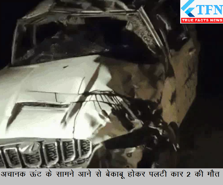 जैसलमेर के हड्डा गांव के पास स्कॉर्पियो के सामने अचानक ऊंट आ जाने से SUV बेकाबू हो गई जिससे आगे का टायर निकल गया। इससे कार पलटी खा गई। कार में सवार 6 लोगों में से 2 की मौत हो गई जबकि 3 गंभीर घायल हो गये जिनको जोधपुर रेफर किया गया। वहीं 1 घायल का जिला अस्पताल में इलाज जारी है।