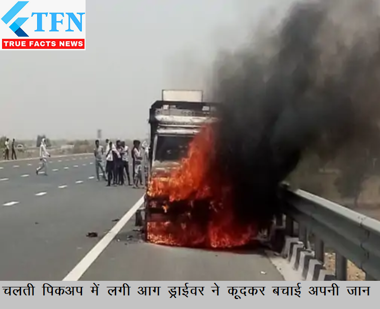 दिल्ली मुंबई सुपर एक्सप्रेस वे पर बड़ौदामेव में शीतल के पास शनिवार दोपहर को दिल्ली से जयपुर की तरफ आ रही चलती पिकअप में आग लग गई। ड्राइवर ने पिकअप से कूदकर जान बचाई। हादसे में पिकअप के आगे का हिस्सा पूरी तरह जल गया।