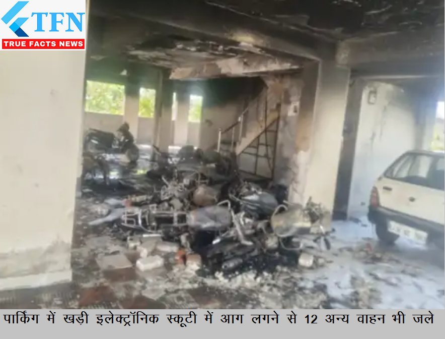 पार्किंग में खड़ी इलेक्ट्रॉनिक स्कूटी में आग लगने से 12 अन्य वाहन भी जले