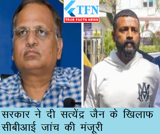 आम आदमी पार्टी के मंत्री सत्येंद्र जैन के खिलाफ CBI जांच की मंजूरी मिल गई है। सुकेश चंद्रशेखर ने तिहाड़ जेल में प्रोटेक्शन मनी के तौर पर 10 करोड़ की राशि सत्येंद्र जैन को देने का दावा किया था इसी मामले में सरकार ने CBI जांच की मंजूरी दी है।