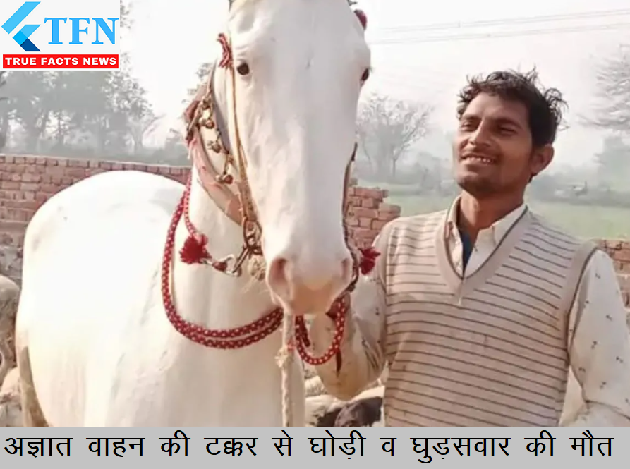 राजस्थान के भरतपुर जिले के कुम्हेर डीग रोड पर एक अज्ञात वाहन की टक्कर से घोड़ी व घुड़सवार की मौत हो गई। कुम्हेर कस्बे के गुदड़ी निवासी तीन नाबालिग बच्चों के पिता भूरा शादी में दूल्हे की निकासी कराने के बाद घोड़ी से अपने घर जा रहा था। इस दौरान अज्ञात वाहन ने टक्कर मार दी। जिसके कारण करीब सौ मीटर तक दोनों को घसीटा और दोनों की दर्दनाक मौत हो गई।