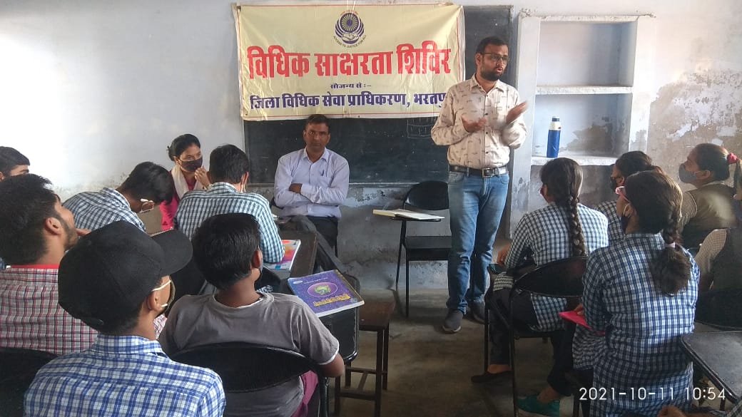 जिला विधिक सेवा प्राधिकरण भरतपुर के तत्वधान में पूर्णकालिक सचिव अजय गोदारा के निर्देशानुसार 11 अक्टूबर को उमापति पब्लिक सीनियर सेकेंडरी स्कूल भरतपुर में विधिक साक्षरता जागरूकता शिविर का आयोजन किया गया। शिविर की अध्यक्षता कर रहे एडवोकेट नीरज शर्मा ने बाल अधिकारिता संरक्षण के बारे में जानकारी देते हुए लैंगिक अपराधों से बालकों का संरक्षण अधिनियम 2012 के विभिन्न प्रावधानों के बारे में जानकारी दी।