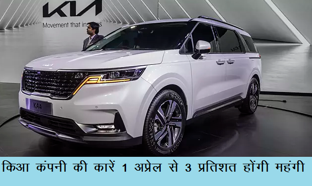 21 मार्च 2024 को कार मैन्युफैक्चरर कंपनी किआ इंडिया ने अपने सभी वाहनों के दाम 3% तक बढ़ाने का ऐलान किया है। वाहनों के बढ़े हुए दाम 1 अप्रैल 2024 से प्रभावी होंगे | लागत और सप्लाई चेन से जुड़ी इनपुट में बढ़ोतरी के कारण कंपनी ने यह फैसला लिया है।