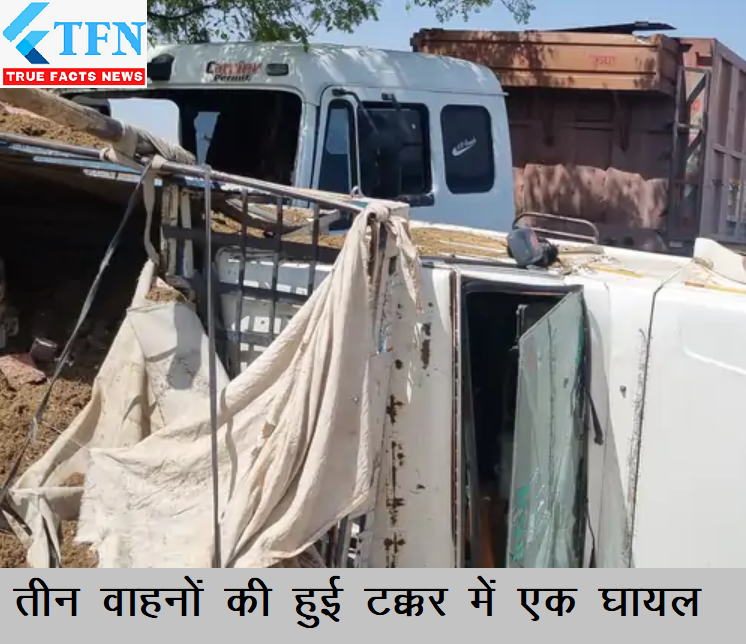 बीकानेर के जयनारायण व्यास कॉलोनी थाना क्षेत्र में नेशनल हाइवे पर नापासर बायपास टोल के पास तीन वाहनों की आमने-सामने की भीषण टक्कर हो गई। टक्कर के बाद पिकअप पलट गई। वहीं कार सवार किशोर घायल हो गया। टोल रूट पेट्रोलिंग टीम मौके पर पहुंचकर घायल को हॉस्पिटल लेकर गई।