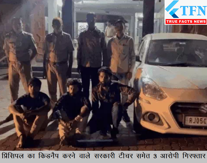 बीएड कॉलेज के प्रिंसिपल ने थर्ड ग्रेड टीचर और कृषि पर्यवेक्षक की नौकरी लगाने के लिए 10 लाख रुपए ले लिएऔर नौकरी नहीं लगने पर रुपए वापस मांगे तो धमकियां दी। रुपए वापस नहीं लौटाने पर रविवार सुबह कार सवार बदमाशों ने मारपीट कर बीएड कॉलेज के प्रिंसिपल का किडनैप कर लिया। जिसकी सुचना पुलिस को मिली तो पुलिस ने बदमाशों का पीछा किया और प्रिंसिपल को छुड़वाया। इस पूरी घटना में किडनैप करने वाले सरकारी टीचर समेत 3 आरोपियों को गिरफ्तार किया है और उनसे पूछताछ कर रही है।