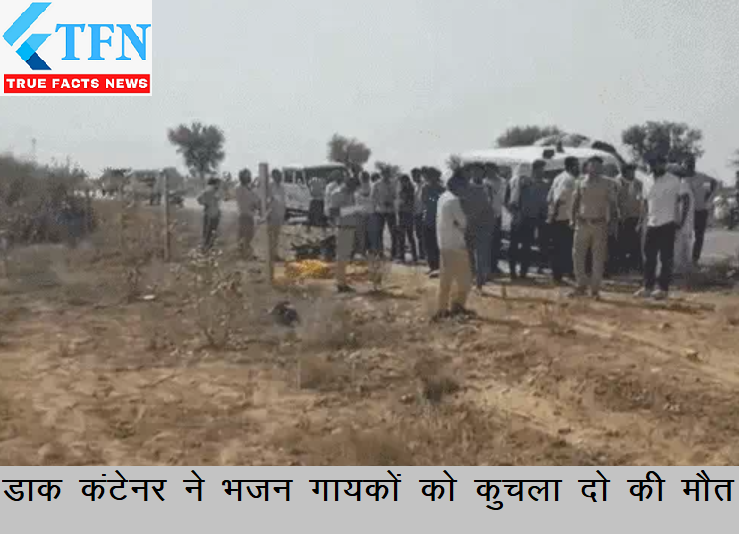 बीकानेर जिले के श्रीडूंगरगढ़ में कंटेनर ने बाइक सवार दो भजन गायकों को टक्कर मार दी जिससे दोनों की मौत हो गई। दोनों गायक बाइक सहित कंटेनर में फंस गए और करीब सौ मीटर तक घसीटते हुए चले गए जिससे दोनों ने मौके पर ही दम तोड़ दिया।