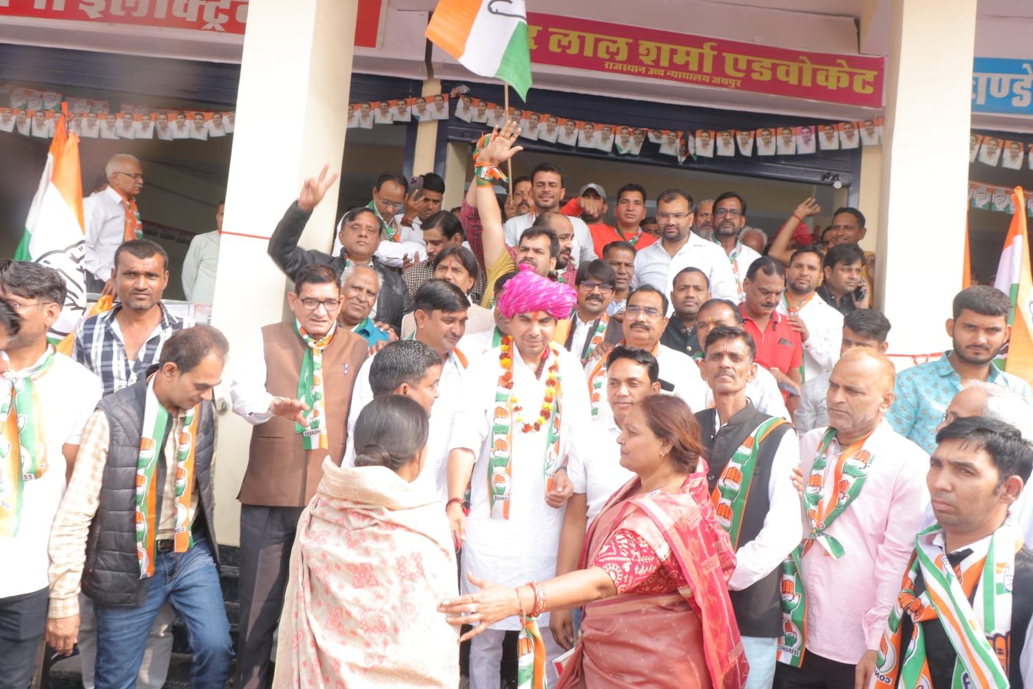 जयपुर। सांगानेर से कांग्रेस प्रत्याशी पुष्पेंद्र भारद्वाज ने गुरुवार को विधानसभा के विभिन्न वार्डों में जनसंवाद किया और कई कार्यालयों के उद्घाटन भी किए। भारद्वाज की जनसंपर्क की सूचना पाते ही महिलाएं, युवा और बुजुर्ग सहित सभी उम्र के मतदाता स्वत: ही वहां पहुंच जाते हैं। उनका कहना है कि जिस व्यक्ति ने पांच साल हमारे लिए संघर्ष किया है, उसे अब मुकाम दिलाने का समय आ चुका है। आमजन का कहना है कि भाजपा प्रत्याशी बाहर का है, उसका ठिकाना ही हम लोगों को मालूम नहीं है। अभी भी बाहर से आए लोग जनता के बीच नहीं बल्कि गाड़ियों में ही घूम रहें है।
