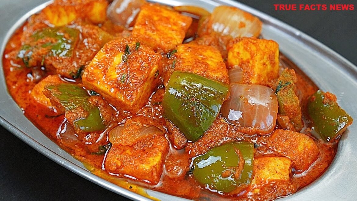 ताजगी और स्वादिष्ट कढ़ाई पनीर तैयार है! इसे अपने परिवार और मित्रों के साथ स्वादिष्ट खाने का आनंद लें।