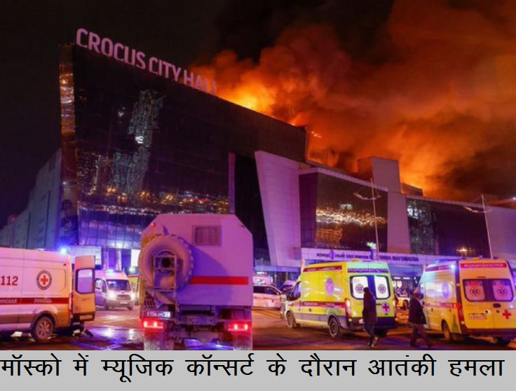 रूस की राजधानी मोस्को में क्रोकस सिटी कॉन्सर्ट हॉल में शुक्रवार को आतंकी हमला हुआ | स्थानीय समय के मुताबिक रात करीब 9.32 बजे म्यूजिक कॉन्सर्ट चल रहा था। इसी बीच तीन से चार हमलावर कॉन्सर्ट में घुस आए और आटोमेटिक हथियारों से गोलियां बरसाना शुरू कर दिया। इस हमले में 60 लोगों की मौत हो गई और 100 से अधिक घायल हैं।