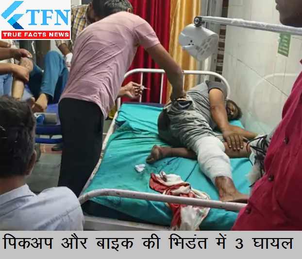 जानकारी के अनुसार सोमवार शाम करीब 8 बजे हरसौरा रोड़ पर मॉडल स्कूल के सामने शाहपुर के रहने वाले सुभाष चंद यादव, सोनू और राकेश यादव बानसूर से काम कर बाइक पर सवार होकर अपने घर शाहपुर जा रहें थे। इसी दौरान मॉडल स्कूल के सामने हरसौरा की तरफ से आ रही एक तेज रफ़्तार पिकअप गाड़ी ने उनकी बाइक को टक्कर मार दी। जिसमें तीनों युवक गंभीर रूप से घायल हो गए। एम्बुलेंस की सहायता से तीनों घायलों को बानसूर उप जिला अस्पताल पहुंचाया जहां से डॉक्टरों ने कोटपुतली रेफर कर दिया। जहाँ तीनो घायलों का इलाज जारी है |