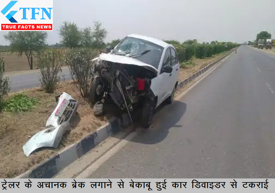 बताया जा रहा है की विवेकानंद कॉलोनी निवासी असिस्टेंट खनिज अभियंता राजेंद्र भट्ट पुत्र गोपाल भट्ट शुक्रवार सुबह कोटा से कार में सवार होकर जयपुर हाईकोर्ट में विभागीय कार्य से जा रहे थे। इसी दौरान घाड़ थाना क्षेत्र में सरोली मोड़ के पास कार के आगे चल रहे ट्रेलर ने अचानक तेज ब्रेक लगा दिए। इससे कार के ड्राइवर ने भी तेज ब्रेक लगाए। इसी वजह से कार बेकाबू होकर डिवाइडर से जा टकराई। घटना से काफी लोग मौके पर एकत्रित हो गए। सूचना के बाद मौके पर पहुंची पुलिस ने दोनों घायलों को दूनी अस्पताल में लाकर इलाज करवाया।