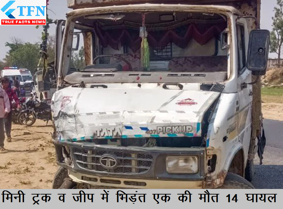 बांसवाड़ा में अरथूना थाना क्षेत्र में माही पुल नांदरिया कोटड़ा के पास तेज रफ्तार मिनी ट्रक ने जीप को टक्कर मार दी जिससे जीप 2 बार पलटी खा गयी जिससे 14 लोग घायल हुए। घायलों को अस्पताल पहुँचाया गया इसके बाद इलाज के दौरान एक महिला ने अस्पताल में दम तोड़ दिया।
